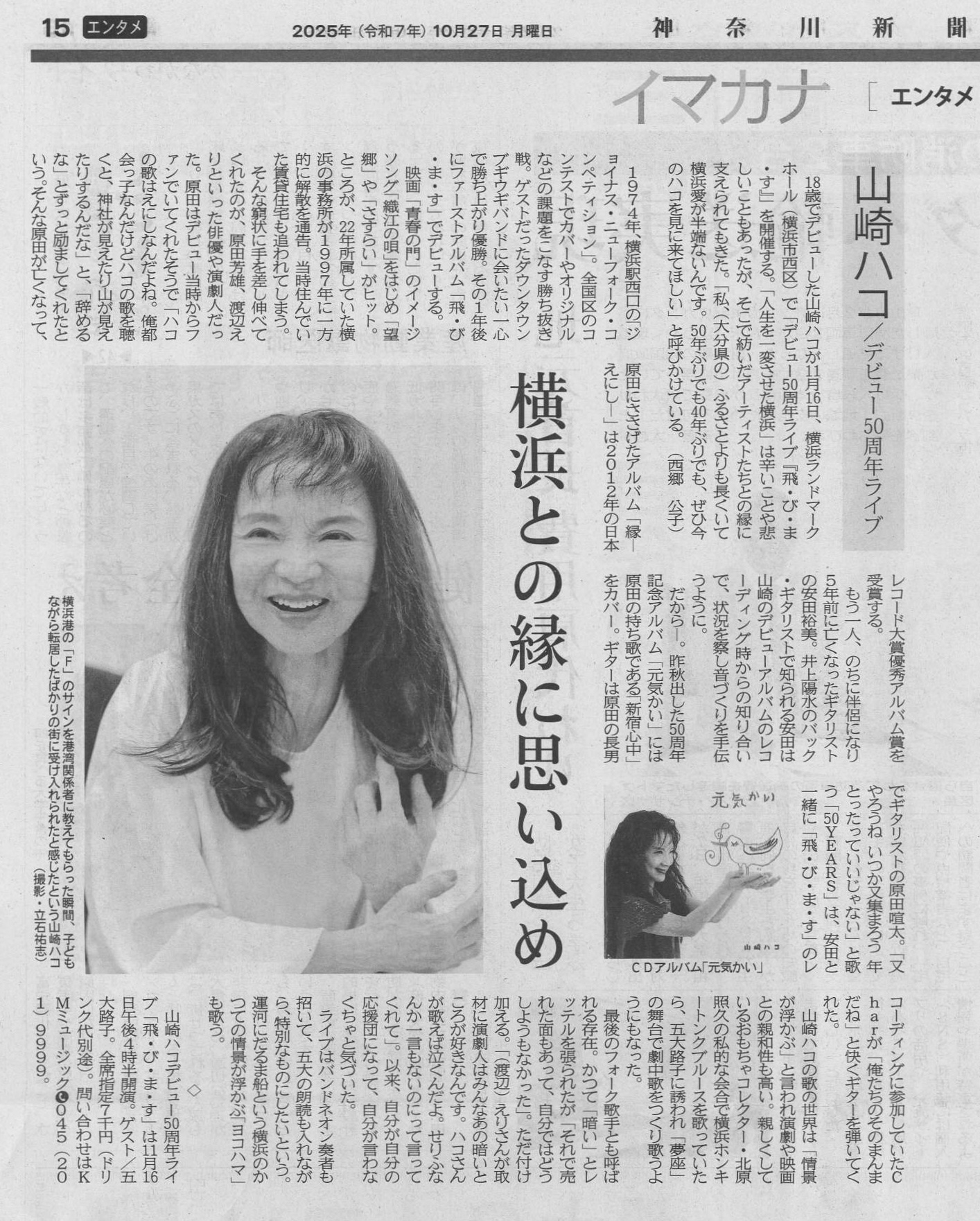 | 山崎ハコ Vo&Gt ゲスト:五大路子 ![]() 👇神奈川新聞掲載記事 ![]() |
